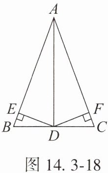 7. 如图 14.3 - 18,在 $\triangle ABC$ 中,$\angle B= \angle C$,$D$ 是 $BC$ 的中点,$DE\perp AB$ 于点 $E$,$DF\perp AC$ 于点 $F$。求证:$AD$ 是 $\triangle ABC$ 的角平分线。