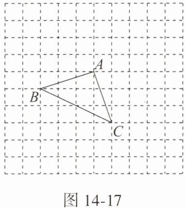 19. (6分)如图14-17所示的$10×10$网格是正方形网格,正方形的顶点称为格点,顶点都在格点上的三角形称为格点三角形.将与$△ABC$全等,并与$△ABC有且只有一条边重合的格点三角形称为△ABC$的“友好格点三角形”.