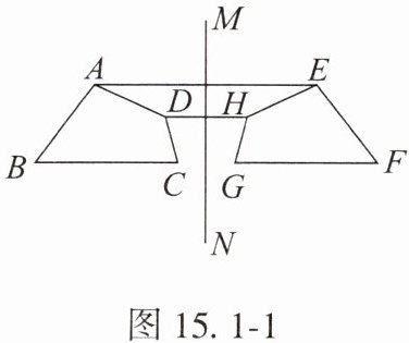如图 15.1 - 1,已知四边形 $ABCD$ 与四边形 $EFGH$ 关于直线 $MN$ 对称,$\angle ADC = 130^{\circ}$,$\angle BAD + \angle B = 155^{\circ}$,$AD = 4\ cm$,$EF = 5\ cm$。