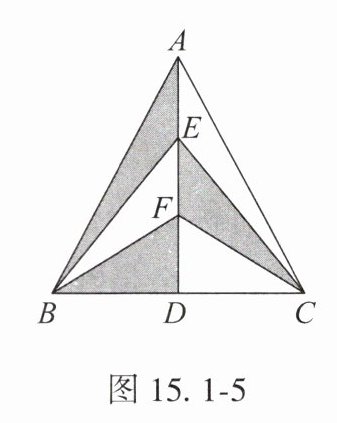5. 如图 15.1 - 5,在 $\triangle ABC$ 中,$AB = AC$,$AD$ 是 $BC$ 边上的高,$E$,$F$ 是 $AD$ 上的任意两点(不与点 $A$,$D$ 重合),若 $\triangle ABC$ 的面积为 $10\ cm^2$,则图中阴影部分的面积是
