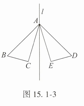 3. 如图 15.1 - 3,$\triangle ABC$ 和 $\triangle ADE$ 关于直线 $l$ 对称,给出下列结论:① $\triangle ABC \cong \triangle ADE$;② $l$ 垂直平分 $DB$;③ $\angle C = \angle E$;④ $BC$ 与 $DE$ 的延长线的交点一定落在直线 $l$ 上。其中错误的有(