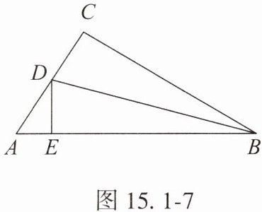 *7. 如图 15.1 - 7,在 $\triangle ABC$ 中,$AB = 12\ cm$,$AC = 6\ cm$,$BC = 10\ cm$,点 $D$,$E$ 分别在 $AC$,$AB$ 上,且 $\triangle BCD$ 和 $\triangle BED$ 关于直线 $BD$ 对称。