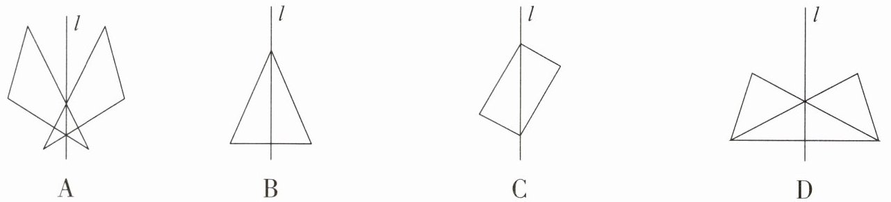 1. 下列图形中,分别以直线$l$为对称轴作轴对称图形,其中错误的是(