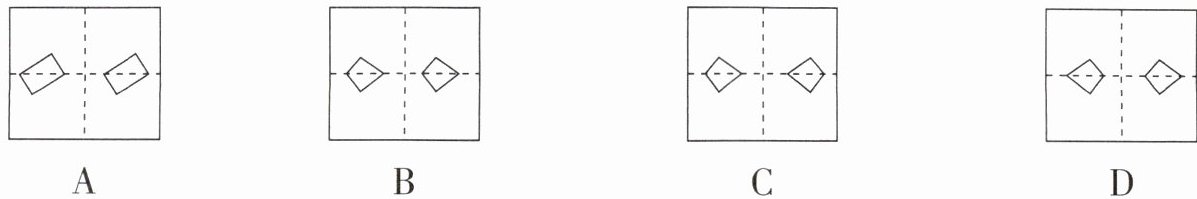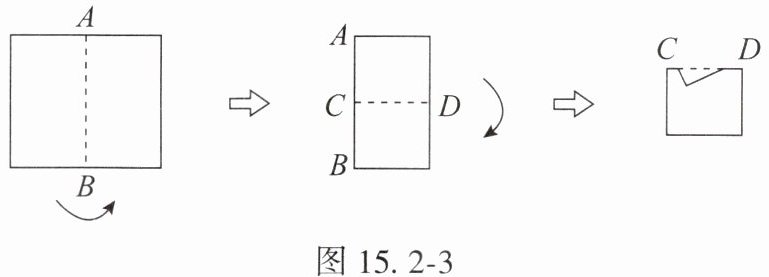 2. 如图 15.2 - 3,将长方形纸片先沿虚线$AB$向右对折,接着将对折后的纸片沿虚线$CD$向下对折,然后剪下一个小三角形,再将纸片打开,则打开后的展开图是(