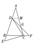 (2) 延长线段$BC至点F$,使得$CF = BE$,连接$FD交AC于点G$,依题意补全图形,用等式表示线段$CG与CB$的数量关系,并证明。
