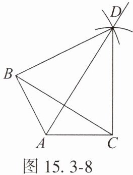 2. 如图 15.3 - 8,在 $\triangle ABC$ 中,$AB = AC$,尺规作图:①分别以 $B$,$C$ 为圆心,$BC$ 长为半径作弧,两弧交于点 $D$;②作射线 $AD$,连接 $BD$,$CD$。则下列结论错误的是(