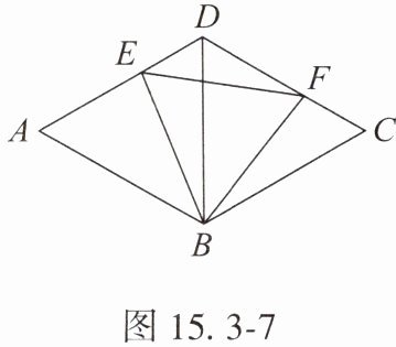 如图 15.3 - 7,$\triangle ABD$ 和 $\triangle BCD$ 均是边长为 $2$ 的等边三角形,$E$,$F$ 分别是 $AD$,$CD$ 上的两个动点,且满足 $AE + CF = 2$。