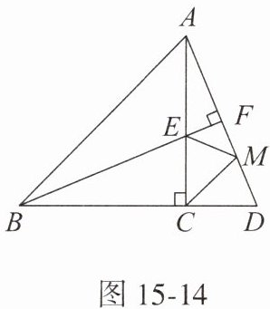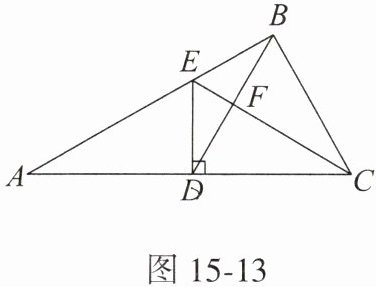 15. (7分)如图15-13,在$Rt\triangle ABC$中,$\angle ABC = 90^{\circ}$,$D是AC$上的一点,$BC = DC$,过点$D作AC的垂线交AB于点E$. 求证:$CE垂直平分BD$.