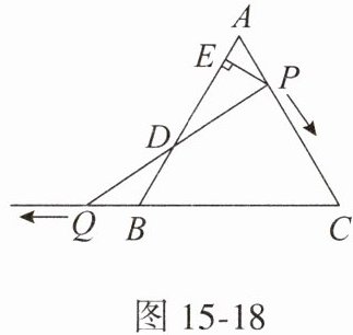 20. (12分)如图15-18,$\triangle ABC$是边长为6的等边三角形,点$P是边AC$上的一动点,由点$A向点C$运动(与点$A$,$C$不重合),点$Q是CB$延长线上的一点,与点$P同时以相同的速度由点B向CB$的延长线方向运动(点$Q不与点B$重合),过点$P作PE\perp AB于点E$,连接$PQ交AB于点D$.