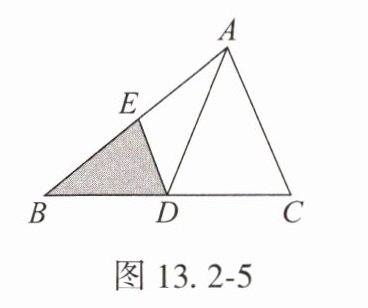 4. 如图 13.2 - 5,在$\triangle ABC$中,点$D$,$E分别是边BC$,$AB$的中点。若$\triangle ABC的面积等于8$,则$\triangle BDE$的面积等于