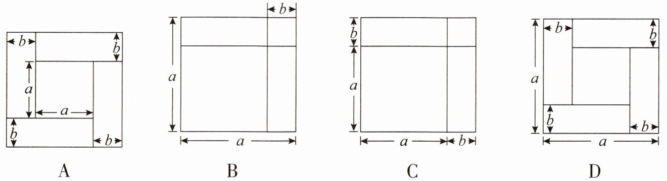 2. 下列各图是由正方形和长方形组成的,其中能表示等式 $(a + b)^{2} = a^{2} + 2ab + b^{2}$ 的是(