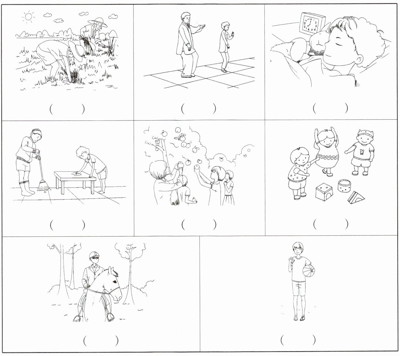 )(2) It's seven o'clock, but the boy is still sleeping.(
