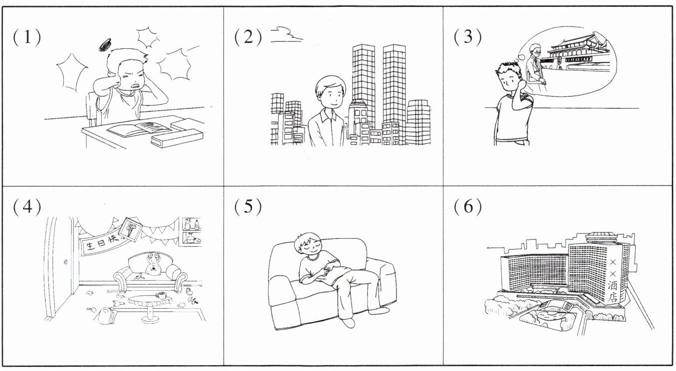 7. 看图,根据首字母提示补全句子所缺的单词。