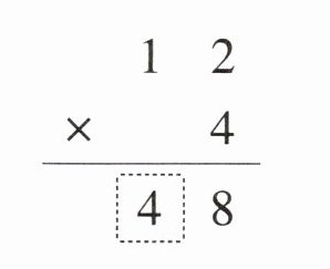 1. 买12支钢笔,每支4元,列竖式计算如图,虚线框中的数字“4”表示(