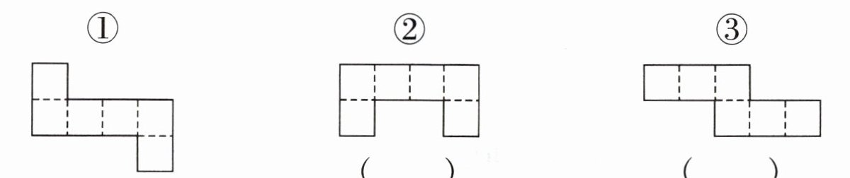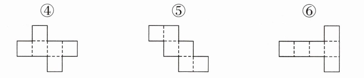 7. 下面哪些图形沿着虚线折叠后能围成正方体?能围成的在( )里画“√”,不能围成的在( )里画“×”。