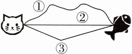 (3)右图中的小猫想要吃鱼,走(