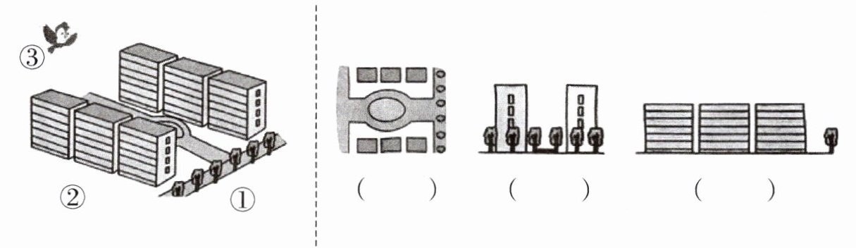 (2) 下面右边的三张照片分别是在哪个位置拍的?把相应的数字编号填在括号里。