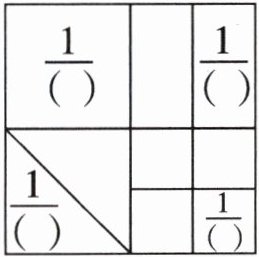 6. 在右图的括号里填上合适的数,表示每个小图形各占大正方形的几分之一。