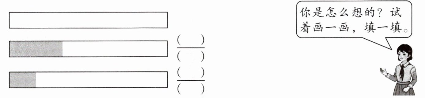 5. 猜一猜,涂色部分分别是这张纸条的几分之几?