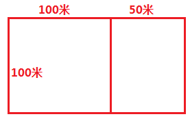 3. 计算新长方形的长:一组对边增加50米后,长=100+50=150米,宽不变为100米