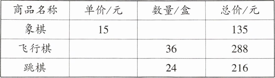 2. 飞行棋单价:$288÷36 = 8$(元)