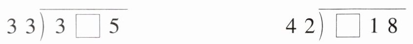 7. 填一填。□里填哪几个数字,商是一位数?填哪几个数字,商是两位数?