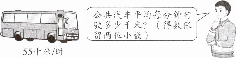 55千米/时 公共汽车平均每分钟行驶多少千米?(得数保留两位小数)