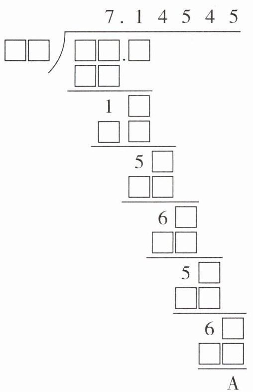 9. 如右图,这是一道两位数除以两位数的竖式计算。这道算式的商是7.14545…,竖式中的A=(