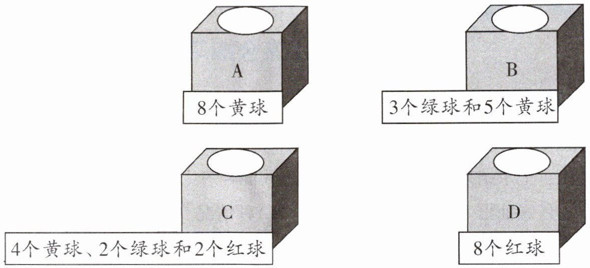 (8)从盒子里摸出一个球,结果会是什么?选一选。