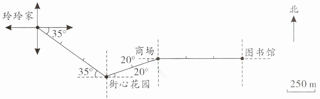 | 街心花园→商场 | 东偏北20° | 500m | 7分钟 |