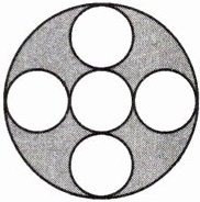 如右图,阴影部分面积与五个小圆面积之和的比是(___
