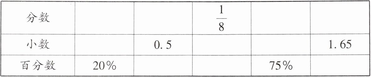 |分数|$\frac{1}{5}$|$\frac{1}{2}$|$\frac{1}{8}$|$\frac{3}{4}$|$\frac{33}{20}$|