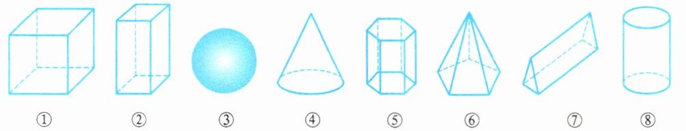 4. 写出下图中各立体图形的名称.①②③④⑤⑥⑦⑧①