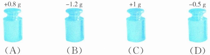 2. 化学老师在实验室中发现了四个因操作不规范沾染污垢或被腐蚀的砝码,经过测量,超出标准质量的部分记为正数、不足的部分记为负数,它们中质量最接近标准的是(