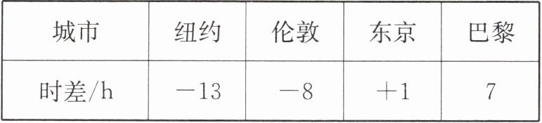 3. 下表列出了国外几个市与北京的时差(带正号的数表示同一时刻比北京时间早的时数)如果现在的东京时间是8:00,那么北京时间是