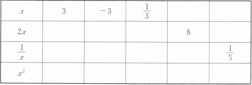 | $\frac{1}{x}$ | $\frac{1}{3}$ | $-\frac{1}{3}$ | 3 | $\frac{1}{4}$ | $\frac{1}{5}$ |