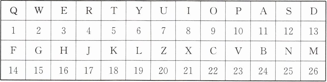 2. 在传输信息时,需要采用密码.有一种密码的明文是按计算机键盘字母排列,如Q,W,E,…,N,M这26个字母依次对应1,2,3,…,25,26.