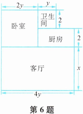 6. 王叔叔购买了一套经济适用房,他准备将地面铺上地砖,地面结构如图所示. 根据图中的数据(单位:m),解答下列问题: