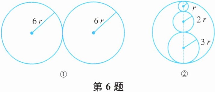 图①中两个圆的周长和为$C_1 = 2\pi×3r + 2\pi×3r=12\pi r$。