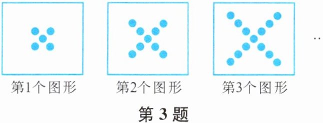 3. 如图,第1个图形中小黑点的个数为5,第2个图形中小黑点的个数为9,第3个图形中小黑点的个数为13,…,按照这样的规律,第20个图形中小黑点的个数是