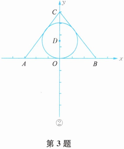 (2)已知,如图②,$\triangle ABC$中,$A$,$B$,$C三点的坐标分别为A(-3,0)$,$B(3,0)$,$C(0,4)$. 若$\triangle ABC内心为D$,求点$D$的坐标.