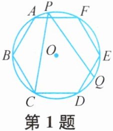 1. 如图,正六边形ABCDEF内接于$\odot O$,点P在$\widehat{AF}$上,Q是$\widehat{DE}$的中点,则$\angle CPQ$的度数为(