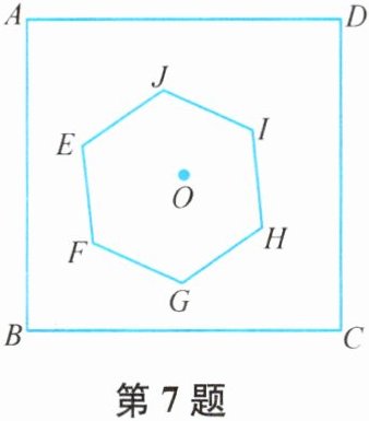 7. 如图,正方形ABCD的边长为1,中心为点O,有一边长大小不定的正六边形EFGHIJ绕点O可任意旋转,在旋转过程中,这个正六边形始终在正方形ABCD内(包括正方形的边上). 当这个正六边形的边长最大时,AE的最小值为