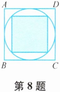 8. 如图,大正方形ABCD的四边均和$\odot O$相切,小正方形内接与$\odot O$中,求图中空白部分与阴影部分面积的比值.