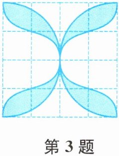 3. 如图,在边长为1的正方形网格中,“x状”图案(阴影部分)是由半径分别为1和2,圆心在格点上的两种弧围成的,则阴影部分的面积是