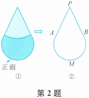 2. 某款“不倒翁”(图①)的主视图是图②,PA,PB分别与$\overset{\frown}{AMB}$所在圆相切于点A,B. 若该圆半径是9 cm,∠P= 40°,则$\overset{\frown}{AMB}$的长是(
