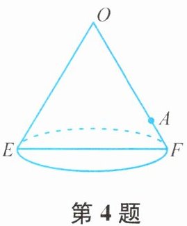 4. 一个用来盛爆米花的圆锥形纸杯如图所示,纸杯开口圆的直径EF的长为10 cm,母线OE(OF)长为10 cm. 在母线OF上的点A处有一块爆米花残渣,且FA= 2 cm,一只蚂蚁从杯口的点E处沿圆锥表面爬行到A点,则此蚂蚁爬行的最短距离为