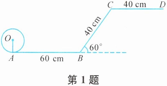 1. 一位小朋友在粗糙不打滑的“Z”字形平面轨道上滚动一个半径为10 cm的圆盘,如图所示,AB位于水平面且平行于CD,BC与水平面的夹角为60°,其中AB= 60 cm,CD= 40 cm,BC= 40 cm.