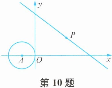 10. 如图,在直角坐标系中,⊙A的圆心A的坐标为(-1,0),半径为1,点P为直线$y= -\frac{3}{4}x+3$上的动点,过点P作⊙A的切线,切点为Q,则切线长PQ的最小值是______.