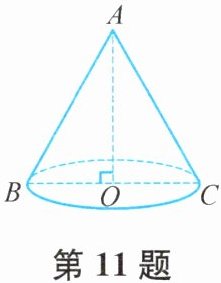 11. 某同学用纸板制作一个圆锥形漏斗,如图,圆锥的母线AC与高AO的夹角为30°,母线长为6 cm. 若不计接缝和损耗,求所需纸板的面积.(结果保留π)